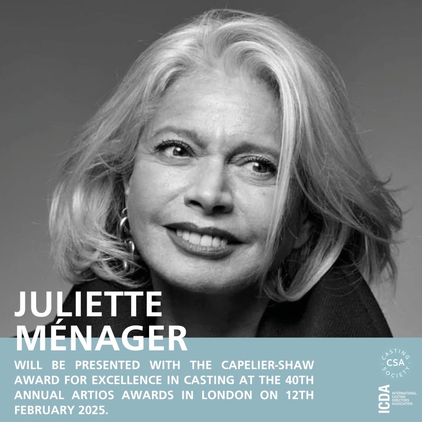 Congratulations to ICDA member Juliette Ménager, who was presented with the prestigious Capelier-Shaw Award for Excellence in Casting at the 40th Annual Artios Awards in London on 12th February 2025. Named in honour of legendary European casting directors Margot Capelier and Rose Tobias Shaw, this award recognises outstanding achievements in casting and unique contributions to the craft. As the founder of Joule Studio Casting in Paris, Juliette has built an international reputation for her eclectic vision, creative innovation, and keen eye for talent, shaping major films and series.